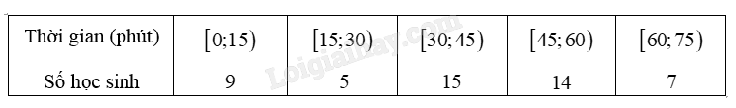 Câu 15. Khảo sát thời gian tập thể dục trong ngày của một số học sinh khối 11 thu được mẫu số liệu ghép nhóm sau.