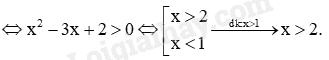 Bất phương trình: \({\log _{\frac{1}{5}}}\left( {{x^2} - 1} \right) < {\log _{\frac{1}{5}}}\left( {3x - 3} \right) \Leftrightarrow {x^2} - 1 > 3x - 3\)(chú ý với cơ số \(\frac{1}{5} < 1\))