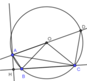 Lại có \(\widehat {ABC} + \widehat {ABH} = {180^0}\) (kề bù) nên \(\widehat {ADC} = \widehat {ABH}\).