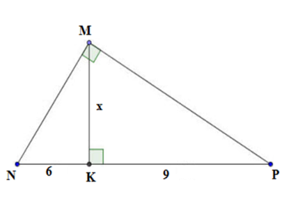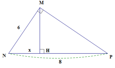 Theo hệ thức lượng trong tam giác vuông ta có \(M{N^2} = N{H^2}.NP \Rightarrow {6^2} = x.8 \Rightarrow x = 36:8 = 4,5.\)