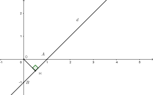 Cho đường thẳng $d:y = x - 1$. Khi đó khoảng cách từ gốc tọa độ đến đường thẳng đã cho là: