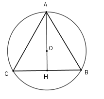 Đường tròn ngoại tiếp tam giác đều cạnh a có tâm là trọng tâm của tam giác đó và bán kính bằng \(\frac{\sqrt 3}{3}a\).