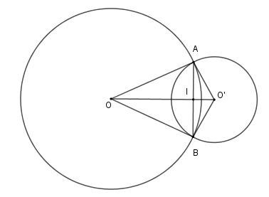 Cho hai đường tròn \(\left( {O;6\,cm} \right)\) và \(\left( {O';2\,cm} \right)\) cắt nhau tại \(A,B\) sao cho \(OA\) là tiếp tuyến của \(\left( {O'} \right)\). Độ dài dây \(AB\) là