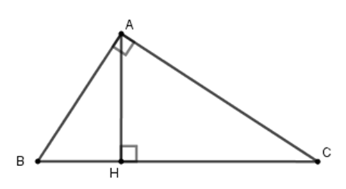 Xét tam giác \(ABC\) vuông tại \(A\) có chiều cao \(AH.\) Theo hệ thức lượng trong tam giác vuông ta có: