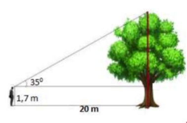 Tính chiều cao của cây trong hình vẽ bên (Làm tròn đến chữ số thập phân thứ nhất)