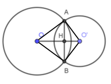 Cho hai đường tròn \(\left( {O;4cm} \right)\) và \(\left( {O';3cm} \right)\) biết \(OO' = 5cm\). Hai đường tròn trên cắt nhau tại \(A\) và \(B\). Độ dài \(AB\) là: