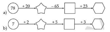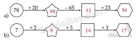 Thực hiện tính theo chiều mũi tên rồi điền số thích hợp vào ô trống.