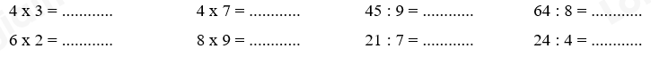 Tính nhẩm dựa vào bảng nhân, bảng chia đã học.