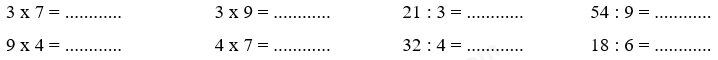 Tải về Tải về đề thi và đáp án Tải về đề thi Tải về đáp án Biết thương là 7, số chia là 4, số bị chia là .... Can nhỏ đựng 3 lít mật ong, can to đựng số lít mật ong gấp 6 lần can bé Đề bài I. Trắc nghiệm Chọn chữ đặt trước câu trả lời đúng Câu 1 : Tích của 6 và 8 là: A. 42 B. 48 C. 54 D. 63 Câu 2 : Biết thương là 7, số chia là 4, số bị chia là: A. 24 B. 21 C. 11 D. 28 Câu 3 : Giảm 56 đi 7 lần được: A. 8 B. 7 C. 49 D. 9 Câu 4 : Hình đã được tô màu $\frac{1}{5}$ hình là: A. Hình 1 B. Hình 2 C....
