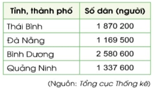 Bảng dưới đây cho biết số dân của một số tỉnh, thành phố nước ta năm 2020.