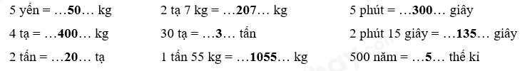 Áp dụng cách đổi: 1 yến = 10 kg ; 1 tạ = 100 kg