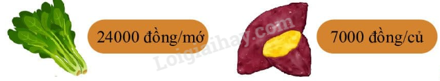 Câu 3. Em dùng tờ 100 000 đồng để mua 1 mớ rau và 7 củ khoai lang có giá như hình bên. Hỏi người bán hàng phải trả lại em bao nhiêu tiền?