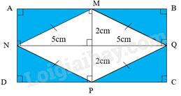 Diện tích hình thoi MNPQ là: SMNPQ = \(\frac{1}{2}\) MP.NQ = \(\frac{1}{2}\) .4.10 = 20 (cm2).
