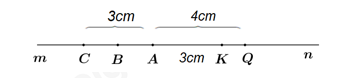 a) Vì AK < AQ (3cm < 4cm) nên K nằm giữa A và Q.