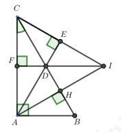 Mà \(DF \bot AC\) nên DF và IF trùng nhau, hay I, D, F thẳng hàng.