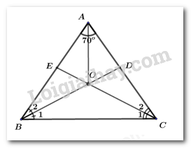 Câu 3. Cho \(\Delta ABC,{\mkern 1mu} \hat A = {70^\circ }\), hai đường phân giác BD và CE cắt nhau tại \(O\), thế thì: