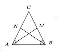 Câu 5: Tính chất nào sau đây không phải của tam giác \(ABC\) cân tại \(C\):