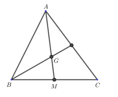Nếu \(\Delta ABC\) có trung tuyến \(AM\) và trọng tâm \(G\) thì \(AG = \dfrac{2}{3}AM;GM = \dfrac{1}{3}AM;AG = 2GM\)