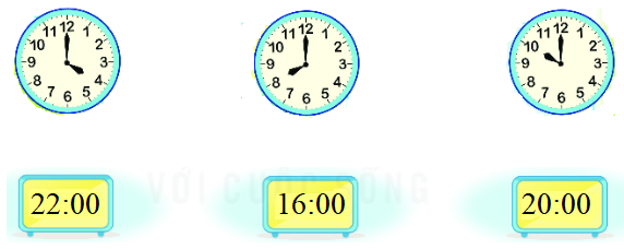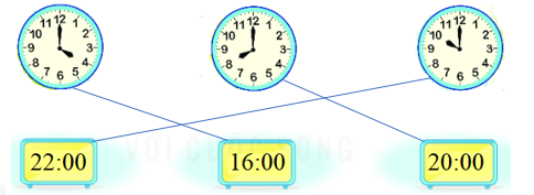 Câu 5. Nối hai đồng hồ chỉ cùng thời gian vào buổi chiều hoặc buổi tối: