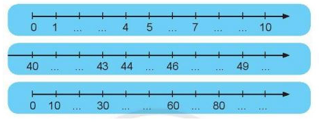 a) Viết số thích hợp vào chỗ chấm ở các tia số trên.