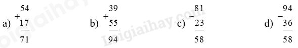 a) 54 + 17 b) 39 + 55 c) 81 – 23 d) 94 – 36