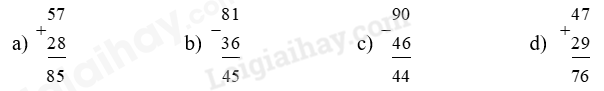 a) 57 + 28 b) 81 – 36 c) 90 – 46 d) 47 + 29