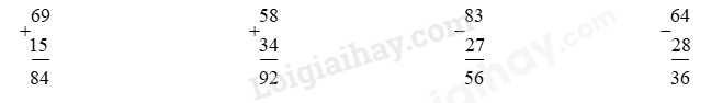 Tính kết quả các phép tính rồi so sánh hai vế.