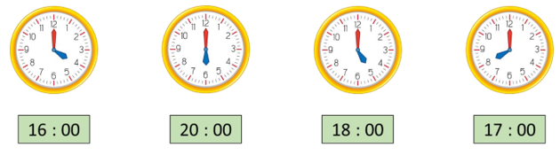 Vẽ thêm kim giờ để đồng hồ chỉ 3 giờ, 20 giờ.