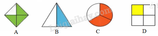 Hình được tô màu $\frac{1}{4}$ được chia thành 4 phần bằng nhau và tô màu 1 phần.