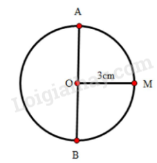 Hãy tính đường kính AB của hình tròn tâm O, biết bán kính OM = 3 cm.