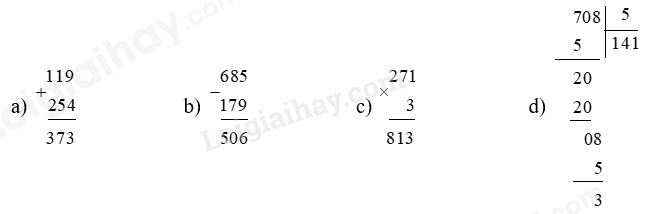 - Cộng hoặc trừ các chữ số thẳng cột lần lượt từ phải sang trái