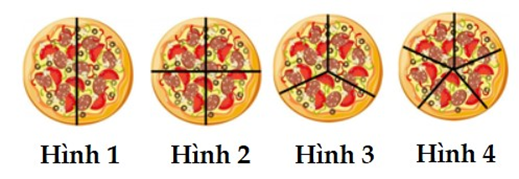 Hình vẽ nào dưới đây chia miếng bánh thành 5 phần bằng nhau?