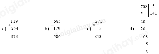 - Cộng hoặc trừ các chữ số thẳng cột lần lượt từ phải sang trái