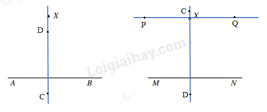 Bước 2: Vẽ đường thẳng PQ đi qua điểm X và vuông góc với đường thẳng CD vừa vẽ ta được đường thẳng PQ song song với đường thẳng MN.