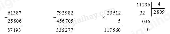 - Với phép chia: Chia lần lượt từ trái sang phải