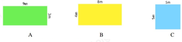 Tính diện tích các khoảng sân, so sánh rồi chọn khoảng sân có diện tích lớn nhất.