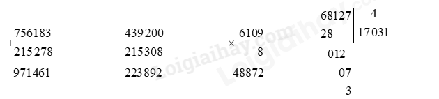 - Với phép cộng, phép trừ, phép nhân: Thực hiện từ phải sang trái