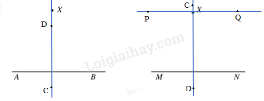 b) Bước 1: Vẽ đường thẳng CD đi qua điểm X và vuông góc với đường thẳng MN