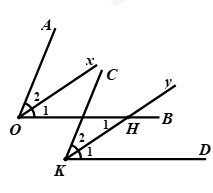 Do đó \(Ox//Ky\) (dấu hiệu nhận biết hai đường thẳng song song).