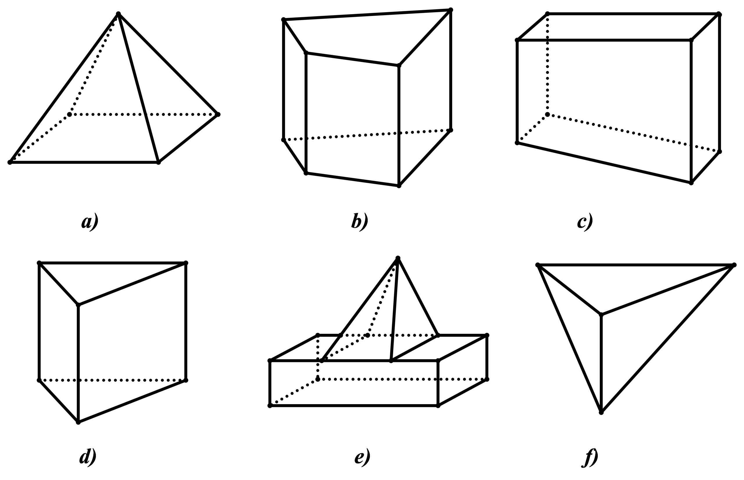 Câu 6: Trong các hình vẽ dưới đây, liệt kê tất cả các hình là hình lăng trụ đứng tam giác hoặc hình lăng trụ đứng tứ giác?