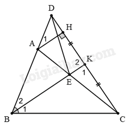 Cho \(\Delta ABC\) có \(AB < BC\). Trên tia BA lấy điểm D sao cho \(BC = BD\). Tia phân giác \(\widehat B\) cắt AC ở E. Gọi K là trung điểm của DC.