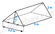 Thể tích khoảng không bên trong lều là: \(V = S\)đáy\(.h\)\( = 1,92.5 = 9,6\,\left( {{m^3}} \right)\)