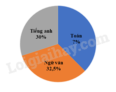 Số phần trăm học sinh đăng ký môn Toán là: \(100\% - 32,5\% - 30\% = 37,5\% \)