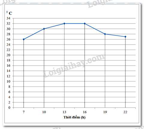 Từ biểu đồ đoạn thẳng, ta thấy: Thời điểm nhiệt độ thấp nhất là 7 giờ; thời điểm nhiệt độ cao nhất là 13 giờ đến 16 giờ.