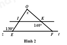 Câu 5: Quan sát Hình 2, có \(IK//EF\). Hãy tính giá trị của \(x\)?
