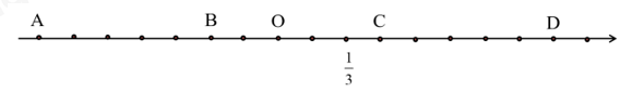 Điểm B nằm bên trái gốc O và cách gốc O một khoảng bằng \(\dfrac{1}{3}\) nên điểm B biểu diễn số hữu tỉ \(\dfrac{{ - 1}}{3}\).