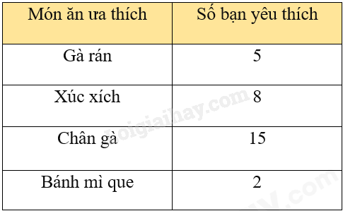 Các món ăn yêu thích của học sinh lớp 8A ghi lại trong bảng sau :
