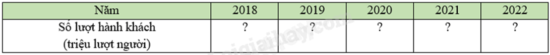 b) Hãy hoàn thiện biểu đồ ở hình bên để nhận được biểu đồ cột biểu diễn các dữ liệu thống kê số lượt hành khách vận chuyển bằng đường bộ ở Hải Phòng trong các năm trên.