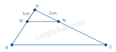 Ta có MN // BC. Áp dụng định lí Thales, ta có: \(\frac{{AM}}{{AB}} = \frac{{AN}}{{AC}} \Leftrightarrow \frac{1}{4} = \frac{2}{{AC}} \Leftrightarrow AC = 4.2 = 8\) (cm).