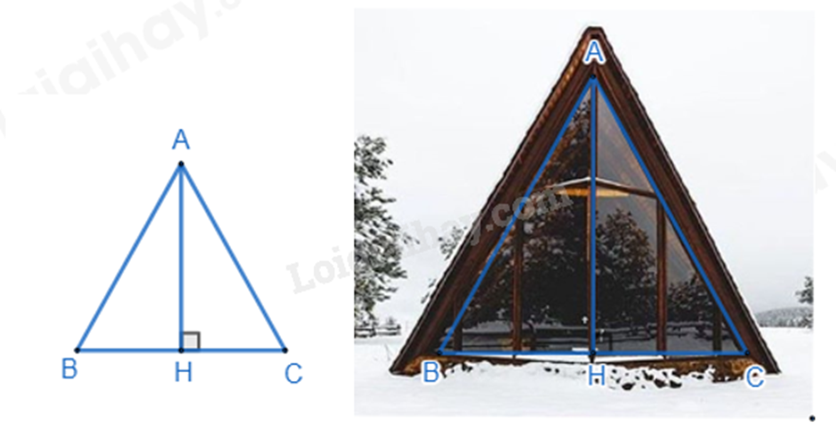 Kẻ \(AH \bot BC\) (H \( \in \) BC). Vì tam giác ABC cân tại A nên AH vừa là đường cao vừa là đường trung tuyến của tam giác ABC. Khi đó H là trung điểm của BC suy ra \(BH = \frac{1}{2}BC = \frac{1}{2}.8 = 4(m)\).